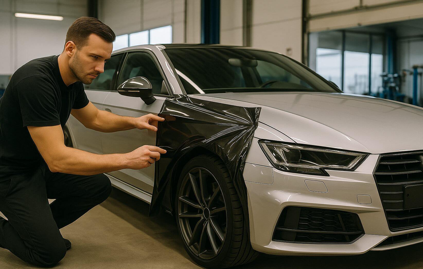 Efter hærdeperioden kan bilen bruges og vaskes normalt med pH-neutral shampoo og blød klud. Hold højtryksrenseren mindst 40–50 cm fra overfladen, og fjern fugleklatter og insektrester hurtigt — syren i dem kan ætse folien over tid. For ridser i vinyl kan mindre skader ofte udbedres uden at udskifte hele panelet.